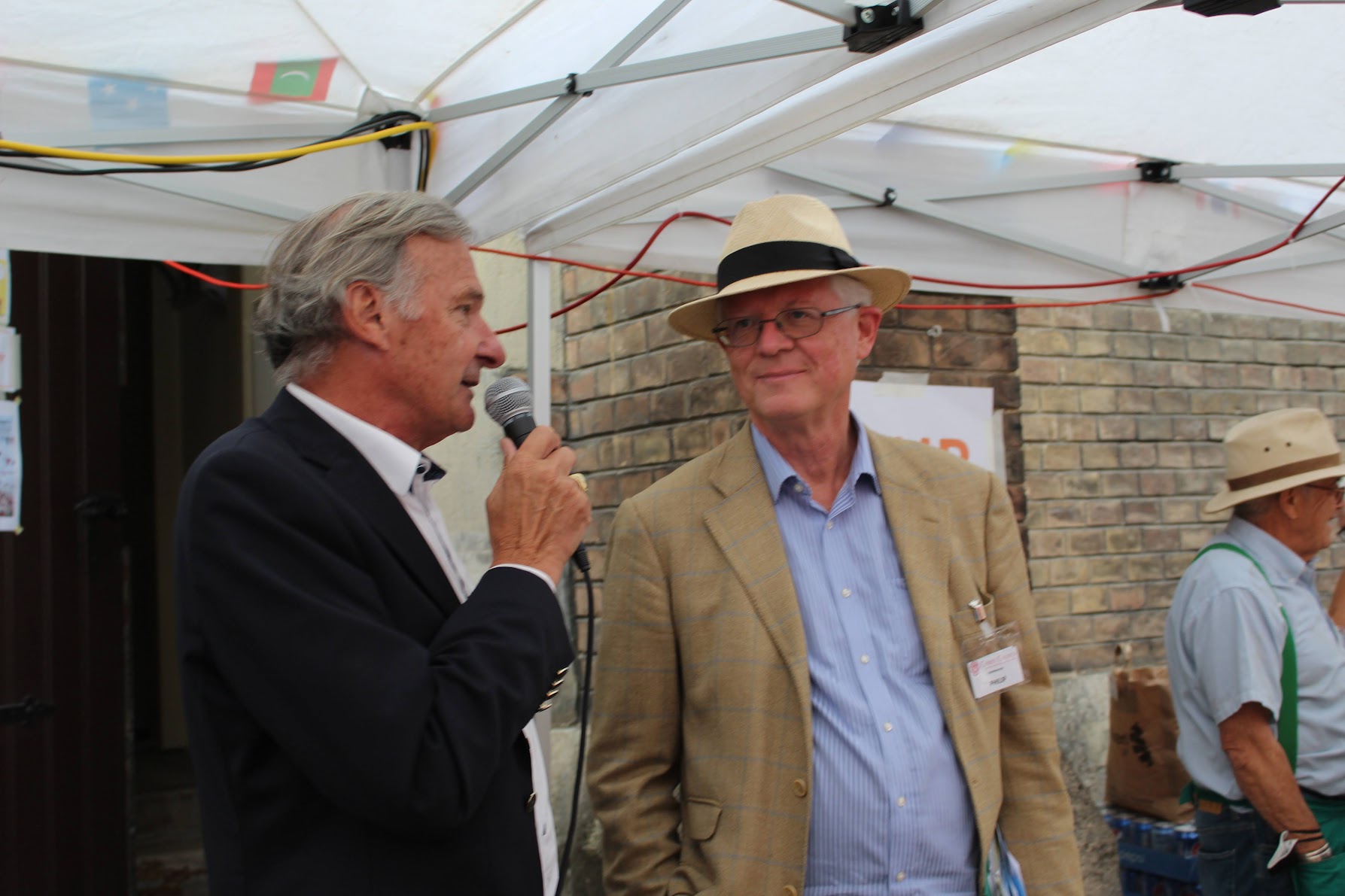 Microphones and the Austro-British Society don’t seem to have a loving relationship. At the grand entrance sometime after 13:00h, our energetic President, Prof Dr Kurt Tiroch, just managed to get his Welcome address out when the microphone on the handover to Bazaar Coordinator Philip Reading gave up its ghost. Poor man. Only those about two metres or six feet in old money close to him could hear what he had to say.